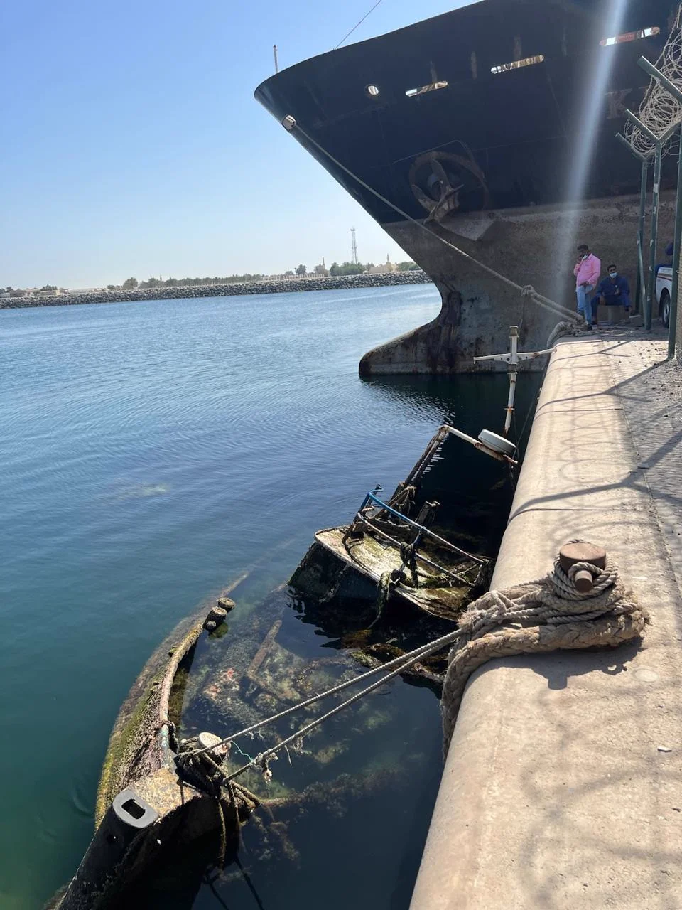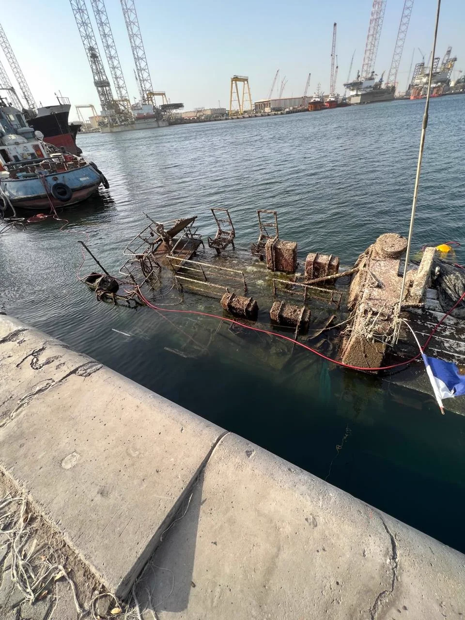 Five grounded and sunken vessels obstructed navigation within Hamriya Port, posing safety risks to port operations and marine traffic.