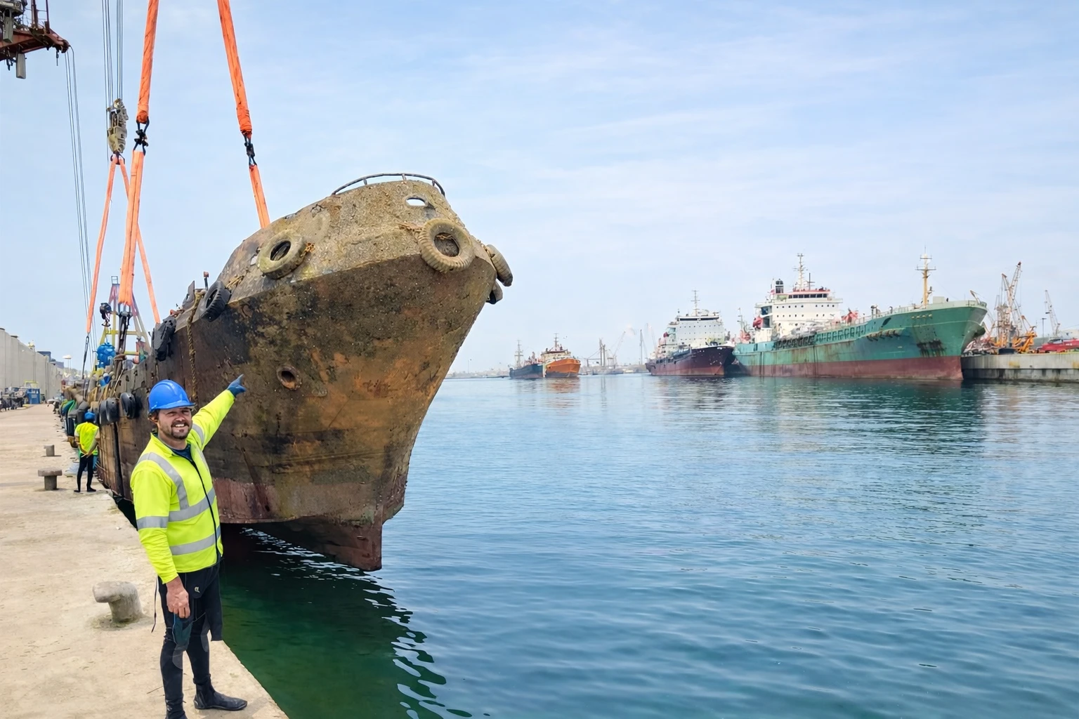The operation began with site assessment and underwater inspections by certified divers. Salvage plans were developed, followed by controlled refloating, cutting, and removal of wrecks using approved lifting and towing methods. All activities were conducted in coordination with port authorities and in compliance with safety standards.
