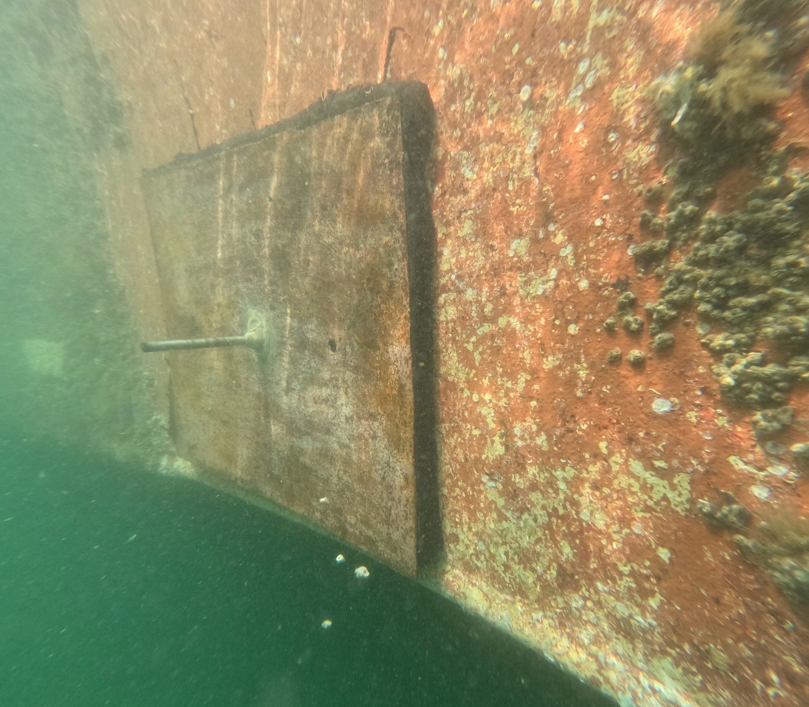 Our divers inspect the sea chest and surrounding systems to plan safe isolation and access.